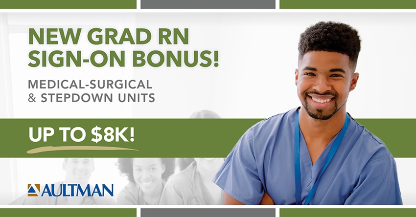 Earn up to $8,000 as a sign-on bonus in the med-surg or stepdown units at Aultman Hospital in Canton! Part-time nurses can earn up to $4,000.