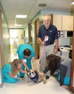 Aultman Volunteer Services is proud to offer the Happy Tails animal-assisted activity program. This program allows certified therapy dogs and their handlers to bring comfort and joy to hospitalized patients.